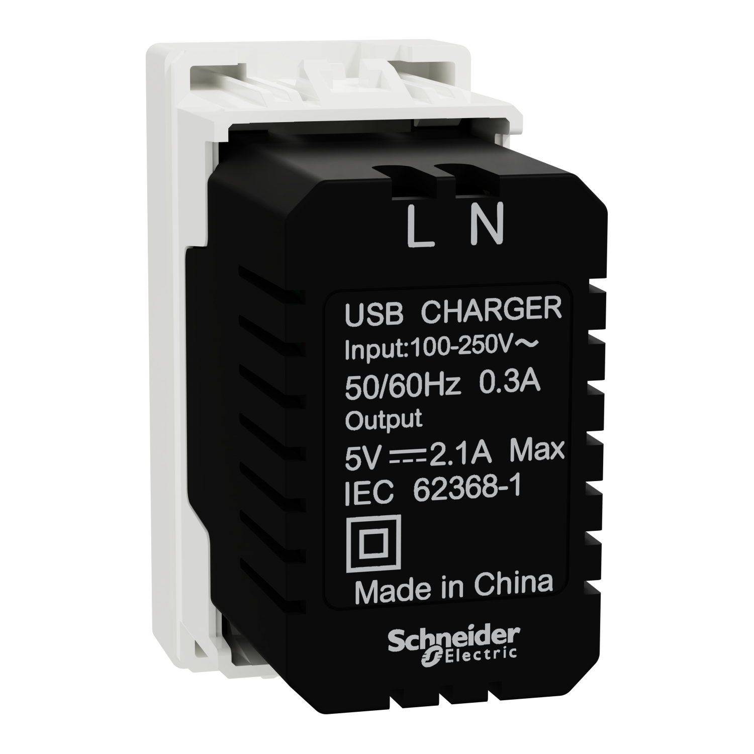 Schneider M3TB_USB_2A | USB Type A, Miluz E, 2 Port, 2.1A, 1 Module, White