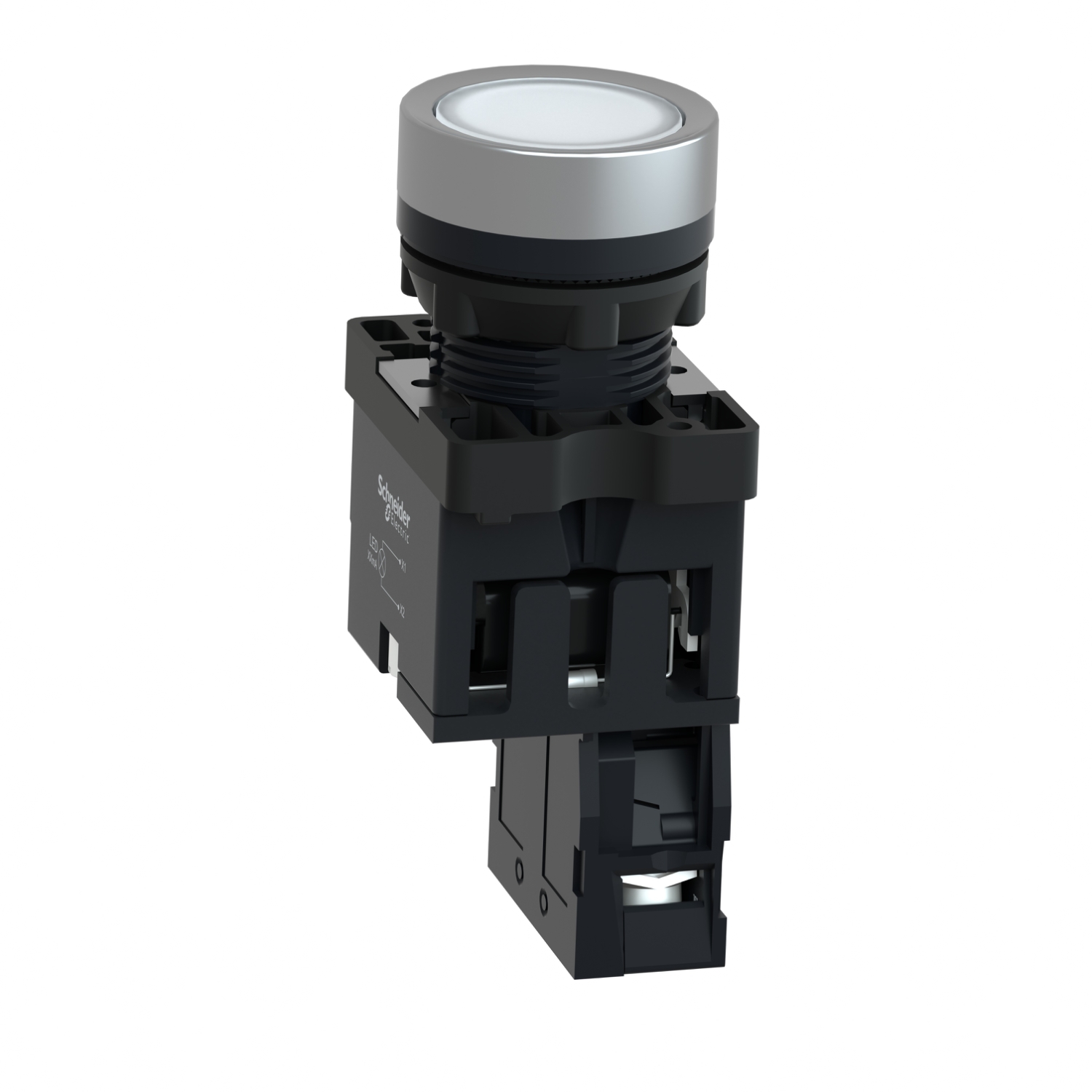Schneider XA2EW31M1 Harmony | Complete illuminated push button, Easy Harmony XA2, plastic, flush, white, 22mm, spring return, 220V AC, 1NO