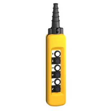 The Schneider Electric XACA691 is a robust and ergonomic pendant control station from the Harmony XAC range. Designed for use in industrial environments, it features six push buttons and is ideal for controlling hoists, cranes, or machinery in a safe and efficient manner.