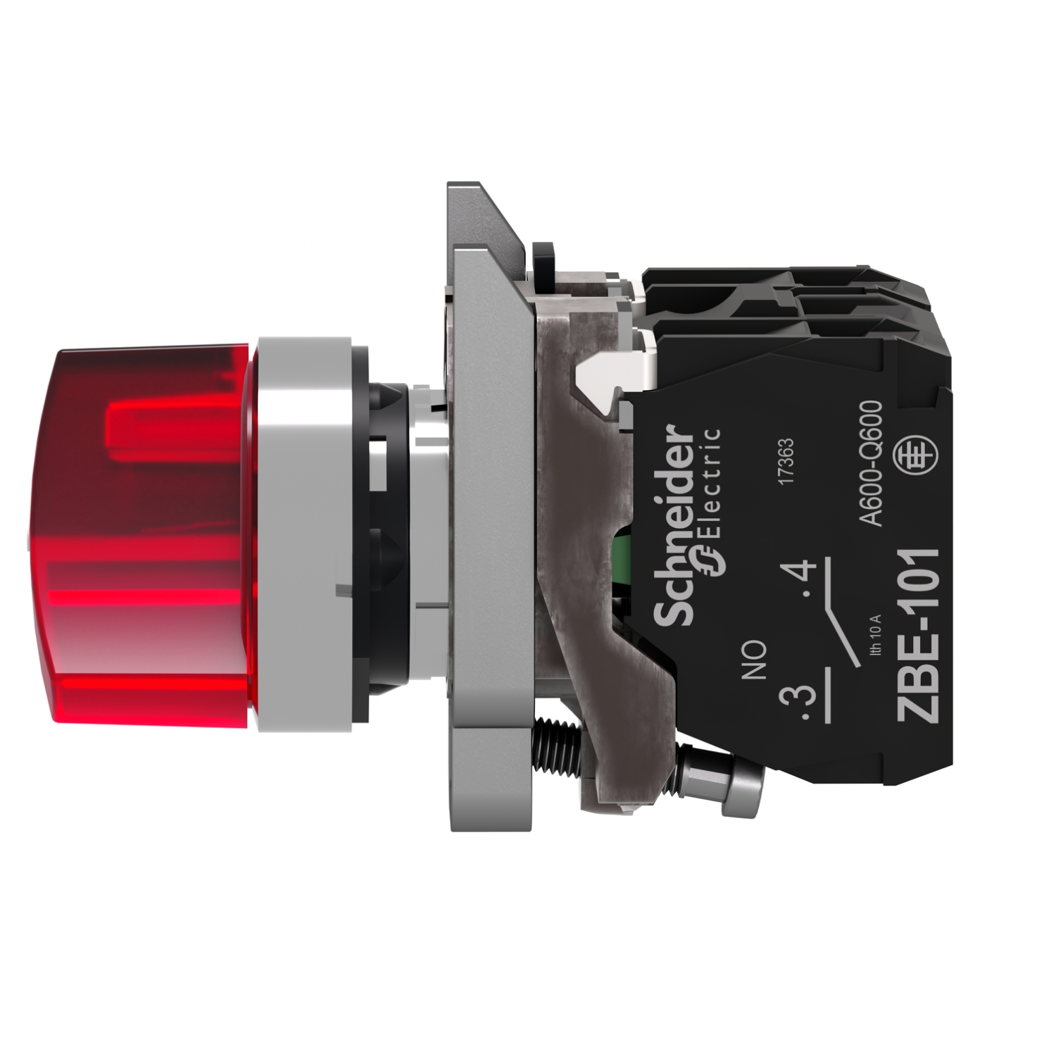 Schneider XB4BK124B5 | Illuminated Selector Switch, Metal, Red, Ø22, 2 Positions, Stay Put, 24 V AC/DC, 1 NO + 1 NC Description